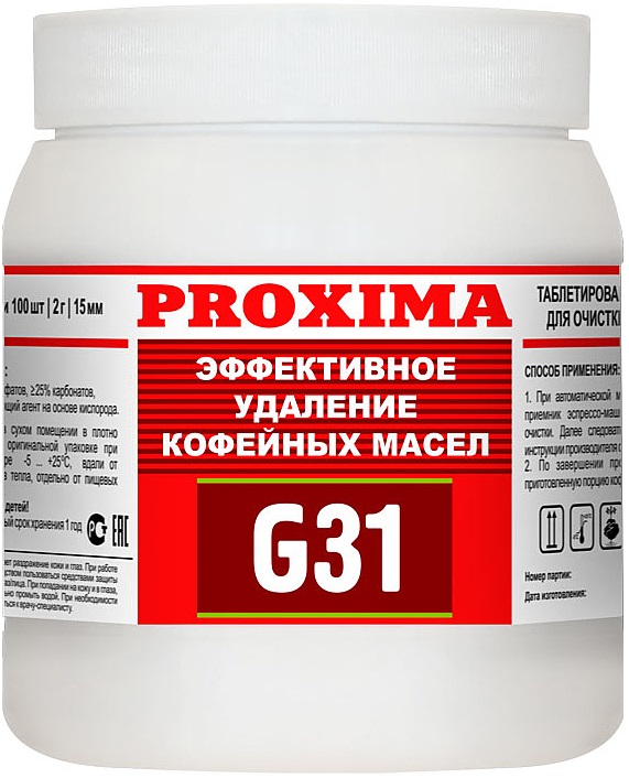 Средство для очистки от кофейных масел Proxima Dr.coffee G31 применяется совместно с кофемашинами на предприятиях общественного питания, торговли и пищевых производствах, а также в офисах и в домашних условиях. Средство бережно и полностью очищает внутренние детали кофемашины и кофеварок от известковых отложений.