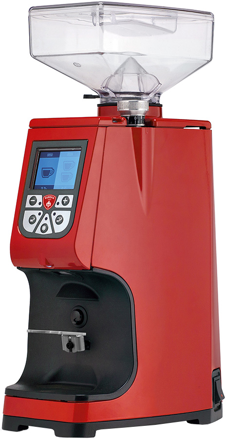 Электронная панель управления с дисплеем, счетчик порций, система настройки помола. Жернова выполнены из закалённой стали. 3 режима работы (2 программируемых, 1 непрерывный режим по таймеру). Высокоскоростная система дозирования, система бесступенчатой микрометрической регулировки помола, запатентованная Eureka,