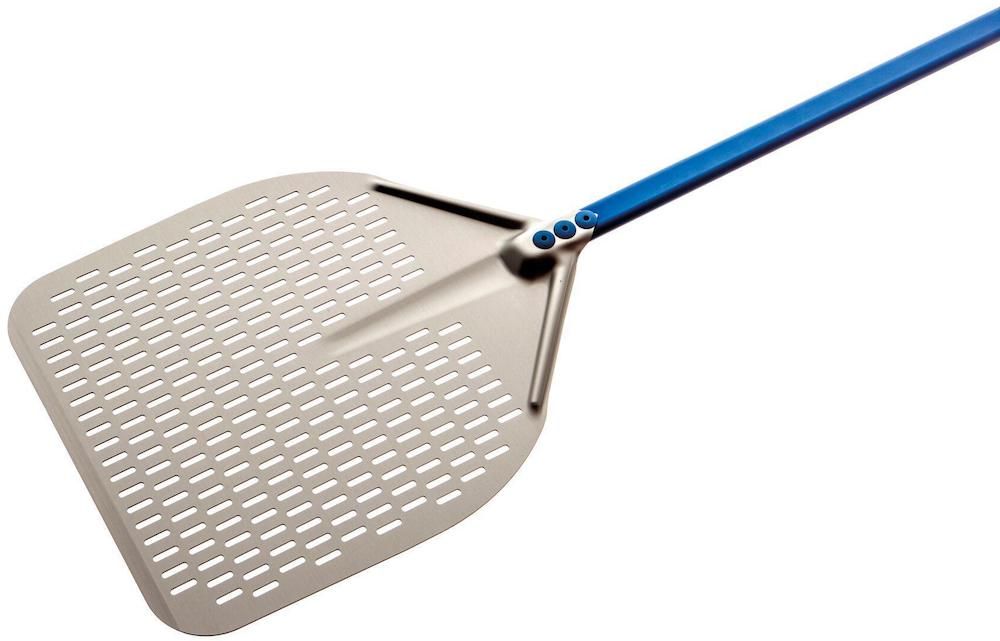 Лопата для пиццы GIMETAL A-32RF используется на предприятиях общественного питания и торговли для загрузки, выемки и поворачивания во время приготовления изделий из теста, готовящихся в печах. Изделие имеет ровные края, небольшой борт у основания и квадратную форму с перфорацией. Рабочая часть и ручка выполнены из анодированного алюминия, который обладает высокой жаропрочностью и устойчив к износу и царапинам.