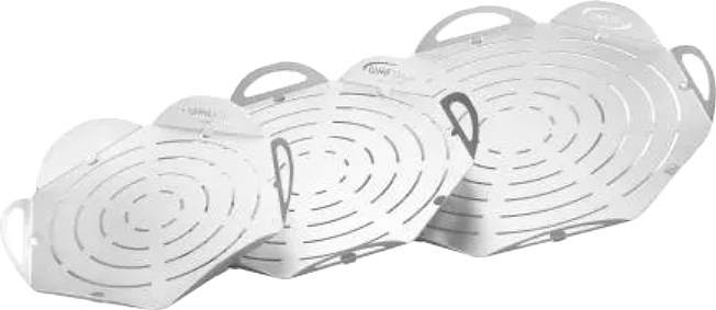 Поднос для пиццы GiMetal VPFT33 предназначается для выкладки, подачи, нарезания пиццы и прочих изделий на предприятиях общественного питания, торговли, пищевых производствах и в домашних условиях. Основание подноса - правильный 6-угольник, 6 бортиков в виде округлых лепестков. Материал изготовления - высококачественный алюминий, перфорация выполнена методом лазерной проточки.