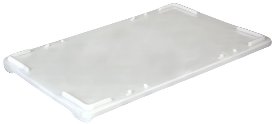 Крышка используется совместно с контейнера для теста 600*400*40 мм для растойки и хранения теста и тестовых заготовок на предприятиях общественного питания, торговли и пищевых производствах. Материал изделия - полиэтилен низкого давления (HDPE).