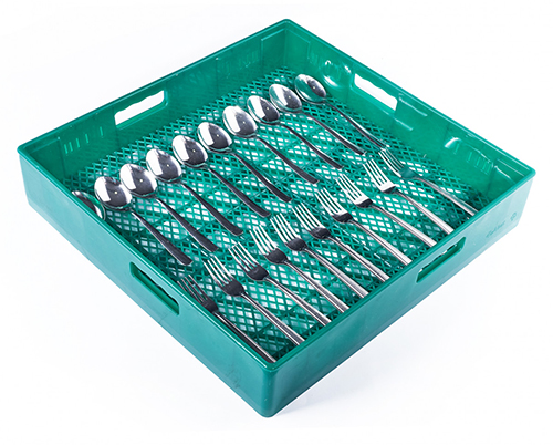 В комплект поставки входят 2 кассеты для мытья тарелок, 2 - для стаканов и чашек, 2 стакана для приборов и 2 металлические сетки для нейтральной кассеты.