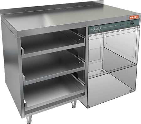 Стол открытый HICOLD НБМКБКП-12/6БП предназначен для комплектации барных стоек, оборудован крылом под посудомоечную машину и тремя полками для корзин с бокалами. Столешница с бортом.
