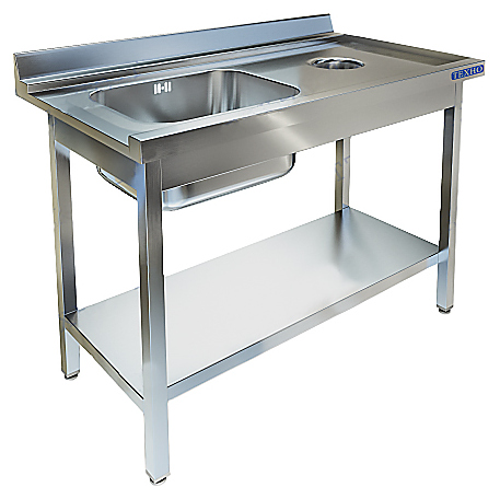 Стол Техно-ТТ СПО-523/1207П/ЛевКр является приставным к посудомоечной машине и предназначается для мытья посуды и кухонного инвентаря на предприятиях общественного питания, торговли и пищевых производствах. Моечная ванна располагается слева, отверстие для сбора отходов справа, стол устанавливается слева. Ножки регулируются по высоте. Каркас - разборный. Материал каркаса - нержавеющая сталь AISI 430 (труба 40x40), материал полки, столешницы и цельнотянутой ванны - нержавеющая сталь AISI 304.