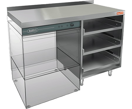 Открытый стол HICOLD НБМКБКП-12/7БЛ используется на предприятиях общественного питания, торговли, в гостиничном бизнесе и других сферах для комплектации барных стоек и размещения посудомоечной машины. Стол оснащен специальным крылом, под которое встраивается посудомоечная машина и 3 полками для корзин с бокалами. Материал корпуса - нержавеющая сталь AISI 430, столешница усилена листом ДСП.