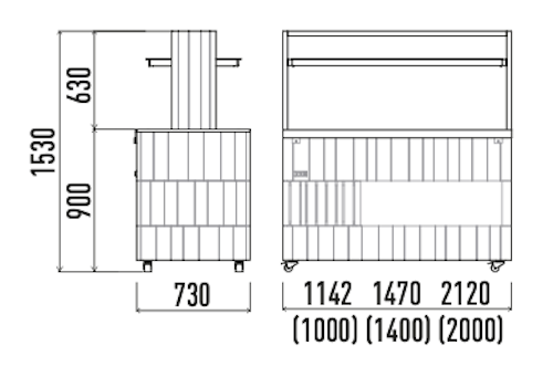 - Ванны из нержавеющей стали AISI 304 или поверхности с подогревом/охлаждением из агломерата Quarzo