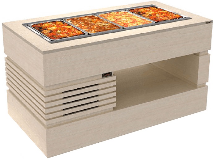 Техно-ТТ БМВ-220/1616 используется на предприятиях общественного питания и торговли для выкладки, хранения и раздачи продуктов. Каркас - оцинкованная сталь, фасад выполнен из шпона и МДФ, столешница изготовлена из искусственного камня. В модели предусмотрен ящик.