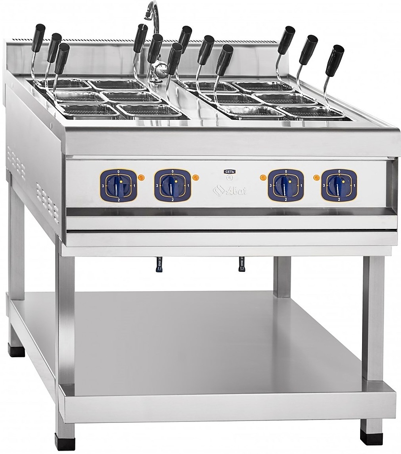 Макароноварка Abat ЭВК-90/2П с корзинами GN-1/6 предназначена для варки всех видов макаронных изделий, пельменей, вареников, овощей, корнеплодов и яиц на предприятиях общественного питания и торговли. Модель оснащена регулируемыми по высоте ножками.