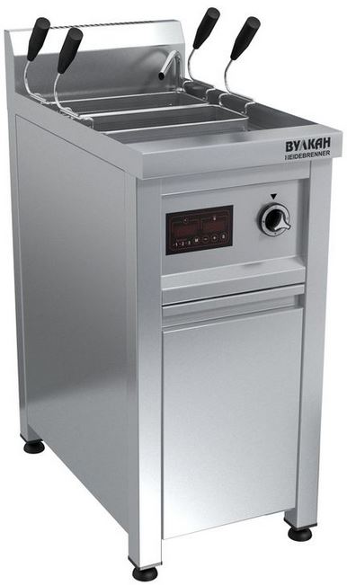 Макароноварка Вулкан ETP1 "Наполи" используется на предприятиях общественного питания, торговли и пищевых производствах для отваривания макаронных изделий. Модель оснащена электронным управлением, автоматической поддержкой температуры, автодоливом воды без прерывания кипения и ножками .Материал изделия - высококачественная нержавеющая сталь.