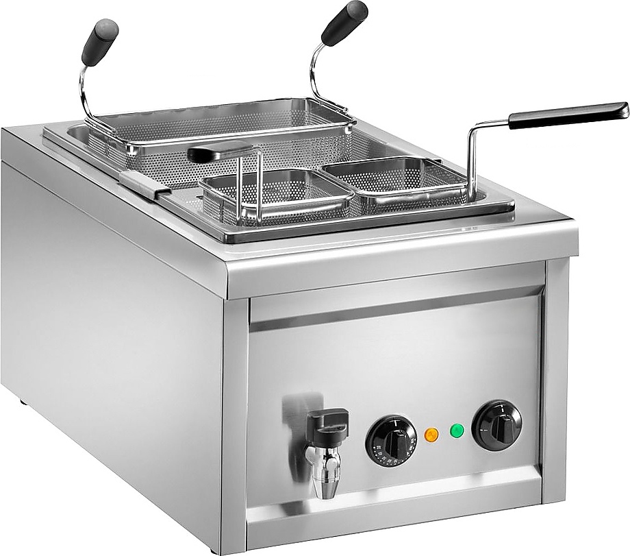 Макароноварка Luxstahl CC11/5 используется на предприятиях общественного питания, торговли и пищевых производствах для отваривания макаронных изделий, пельменей, вареников, кукурузы, фрикаделек и овощей. Модель оснащена электронным управлением и сливным краном. Материал ванны и корпуса - высококачественная нержавеющая сталь.