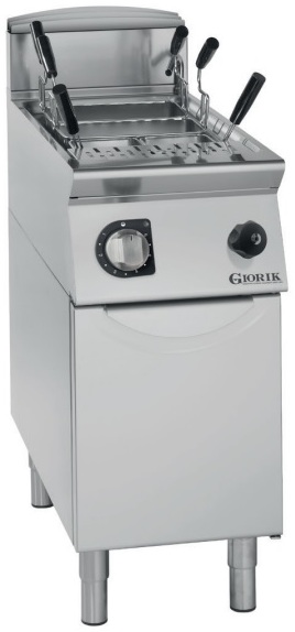 Макароноварка Giorik Unika 900 CPE926 предназначена для приготовления различных макаронных изделий на предприятиях общественного питания, торговли и пищевых производствах. Модель оснащена электромеханическим управлением, регулировкой температуры для каждой ванны, защитным термостатом от перегрева, световыми индикаторами работы, краном для слива, шкафом для хранения различного инвентаря и регулируемыми ножками. Материал корпуса - высококачественная нержавеющая сталь.
