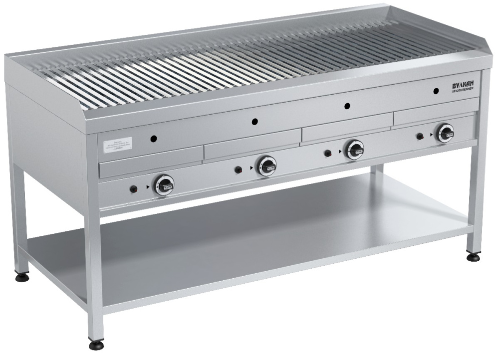 Лавовый гриль Вулкан BPD 04L «Узон» предназначен для жарки различных продуктов на предприятиях общественного питания и торговли. В процессе приготовления блюда получают такой же вкус, аромат и внешний вид, словно их готовили на открытом огне. Вулканическая лава равномерно распределяет жар по продукту; лавовый камень впитывает лишнюю жидкость и исключает появление неприятных запахов в процессе готовки. Модель оснащена газ-контролем, пьезоподжигом, запальной горелкой и защитным бортом от разбрызгивания. Специальная V-образная решетка задерживает излишки жира, выделяющиеся при жарке.