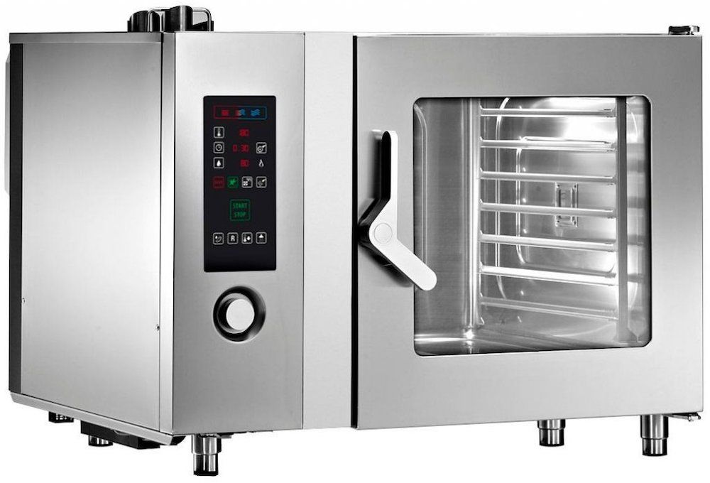 Пароконвектомат Angelo Po FX82E2T предназначен для приготовления различных блюд методом обработки паром и горячим воздухом на предприятиях общественного питания и торговли. Такое оборудование может заменить плиту, жарочный и духовой шкаф, конвекционную печь, опрокидывающуюся сковороду, пищеварочный котел и др. Благодаря специальным технологиям запах приготовляемой пищи не распространяется в помещениях.