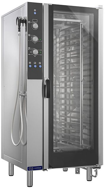 Пароконвектомат KAYMAN ПКЭ-20-И А используется на предприятиях общественного питания, торговли и пищевых производствах для жарки, тушения, глазирования. Данное изделие исключает смешение вкусов и запахов и исключает высыхание пищи. Модель оснащена электронным управлением, таймером, высокоскоростными вентиляторами, ТЭНами, сливным отверстием для жидкостей, ножками, ручкой и светодиодной подсветкой. Материал дверцы - закаленное термостойкое стекло.