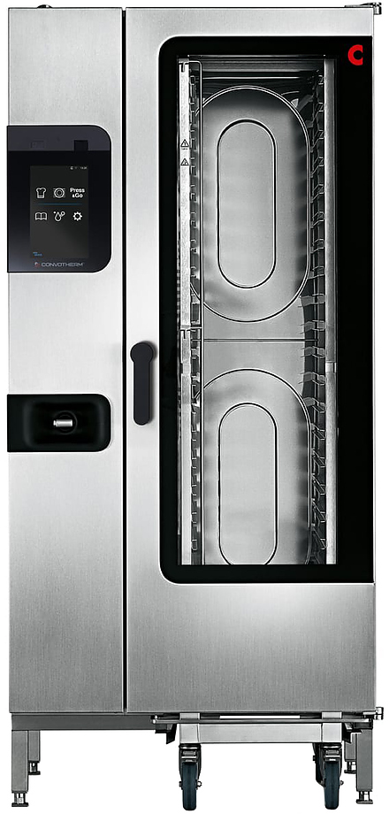 Пароконвектомат Convotherm 4 easyTouch 20.10 GB предназначен для обжаривания, приготовления на пару, бланширования, запекания и других видов тепловой обработки продуктов на предприятиях общественного питания. Модель оснащена 9-дюймовым full-touch экраном, многоточечным термощупом, 5-скоростным вентилятором и программируемым таймером запуска. Режимы приготовления: на пару (от 30 до 130°C), комбинированный пар (от 30 до 250°C), конвекция (от 30 до 250°C) и комбинированная конвекция.
