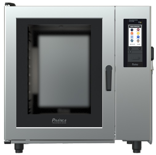 Пароконвектомат Pratica TSi-10 предназначен для приготовления широкого спектра блюд, а также для выпечки хлебобулочных и кондитерских изделий на предприятиях общественного питания, торговли и пищевых производствах. Модель оснащена Touch Screen управлением, интеллектуальной системой очистки, регулировкой температуры и пара, термо-щупом и ножками. Материал корпуса - высококачественная нержавеющая сталь AISI 444 и AISI 430, материал изоляции - керамическое волокно.