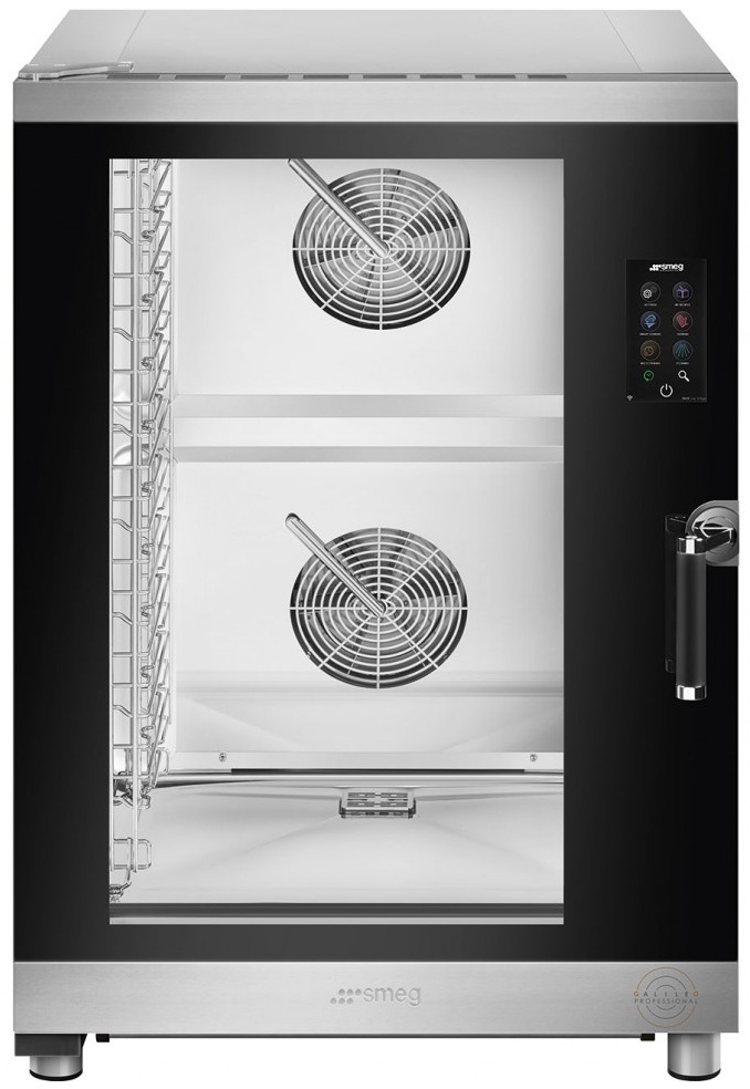 Пароконвектомат Smeg SPO8L2SDL серии Galileo используется для обжаривания, приготовления на пару, бланширования, запекания и других видов тепловой обработки продуктов на предприятиях общественного питания, торговли и пищевых производствах. Модель оснащена Touch Screen управлением, дисплеем 7", автоматическим отключением при открытой двери, автоматической мойкой, термощупом, эргономичной ручкой, LED-подсветкой, таймером и регулируемыми ножками. Материал корпуса - высококачественная нержавеющая сталь AISI 304, материал двери - тройное термостойкое стекло.