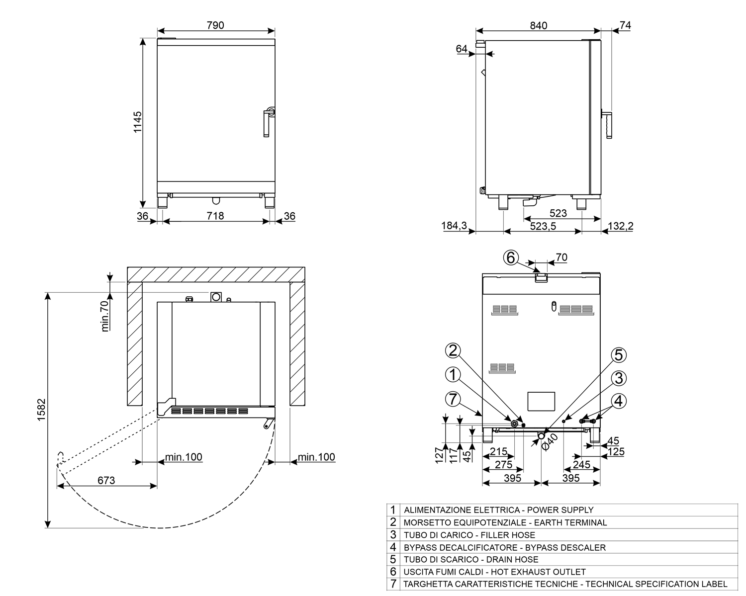 • Максимальная глубина с открытой дверцей: 1581 мм