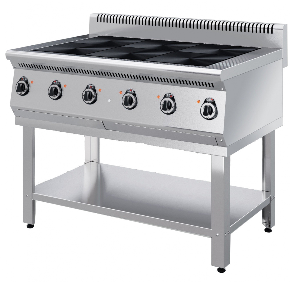 Электрическая плита KAYMAN ПЭ-6-111-МХ используется на предприятиях общественного питания, торговли и пищевых производствах для приготовления блюд в наплитной посуде.6 терморегуляторов на передней панели Плита поставляется на подставке. Материал столешницы и лицевой панели - нержавеющая сталь, боковины и подставка окрашены.
