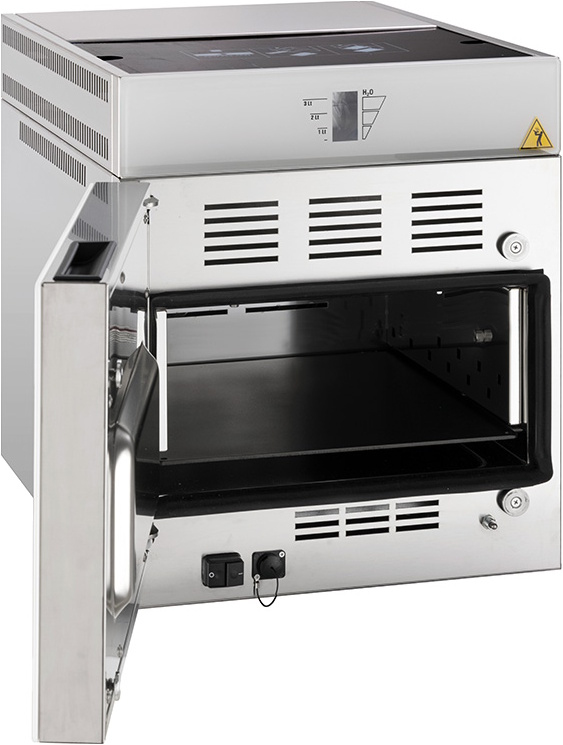 Печь высокоскоростная FIMAR Rapid-O используется на предприятиях общественного питания, пищевой промышленности и торговых точках для приготовления широкого спектра блюд, выпечки хлебобулочных и кондитерских изделий, а также разогрева. Модель оснащена сенсорным управлением, дисплеем 7", переувлажнением, регулировкой влажности, автоматической регулировкой температуры и сигналом окончания цикла. Материал корпуса и камеры - высококачественная нержавеющая сталь AISI 444 и AISI 430, материал двери - закаленное стекло.