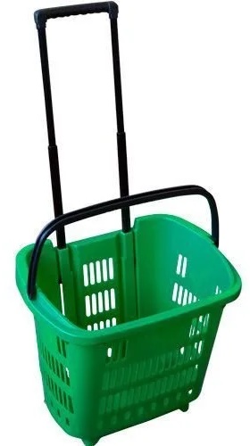 Покупательская тележка EKSI PBT34 GN используется в крупных гипермаркетах и магазинах самообслуживания для перемещения продуктов и других товаров. Модель оснащена телескопической ручкой для перемещения по полу, пластиковой ручкой для ношения и подъема и колесиками. Материал корпуса - пластик.